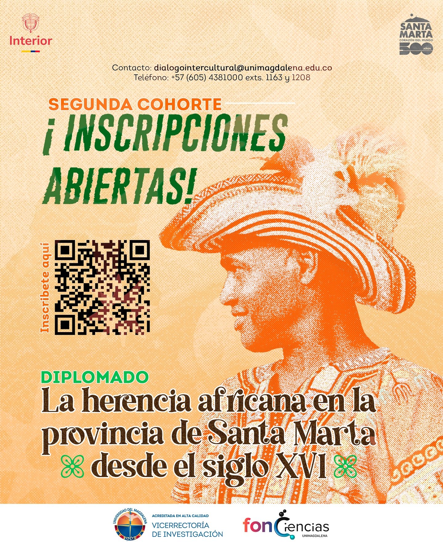 El Ministerio del Interior, en alianza con la Universidad del Magdalena, en el marco del Convenio Interadministrativo No. 2205 de 2025, abre formalmente las inscripciones al Diplomado “Herencia africana en la provincia de Santa Marta desde el siglo XVI”, una iniciativa académica y comunitaria orientada a fortalecer la memoria, el liderazgo y la defensa de los derechos étnicos en Colombia.
